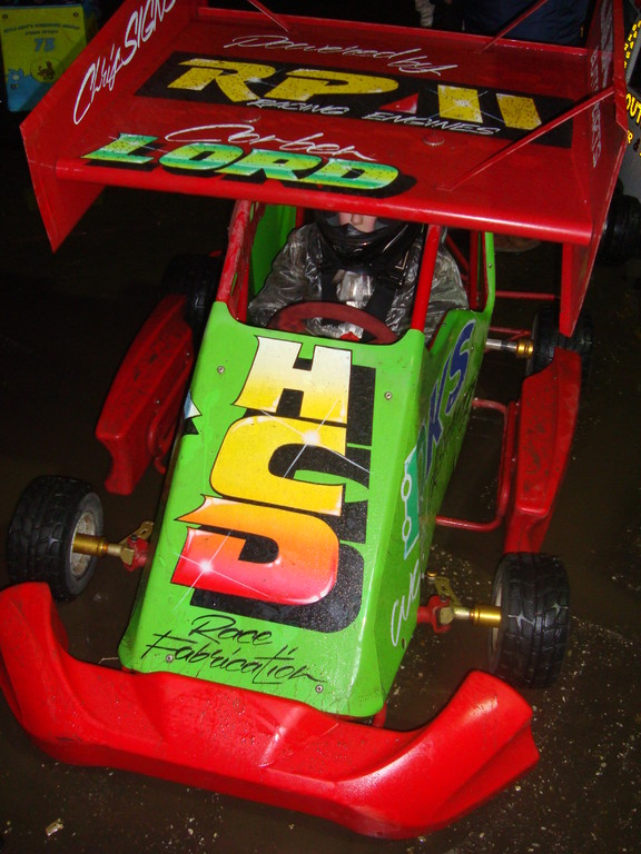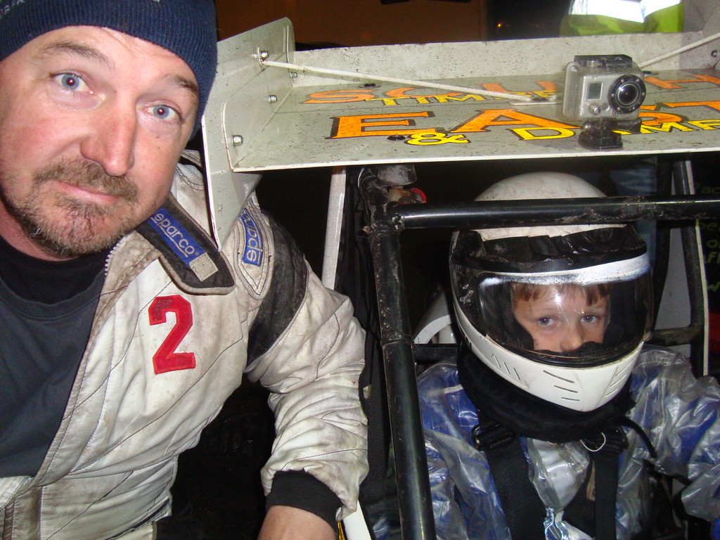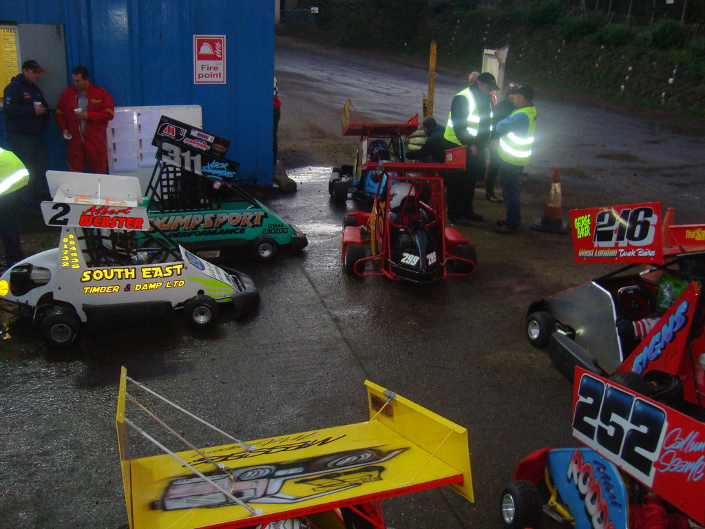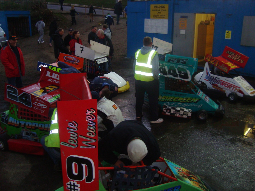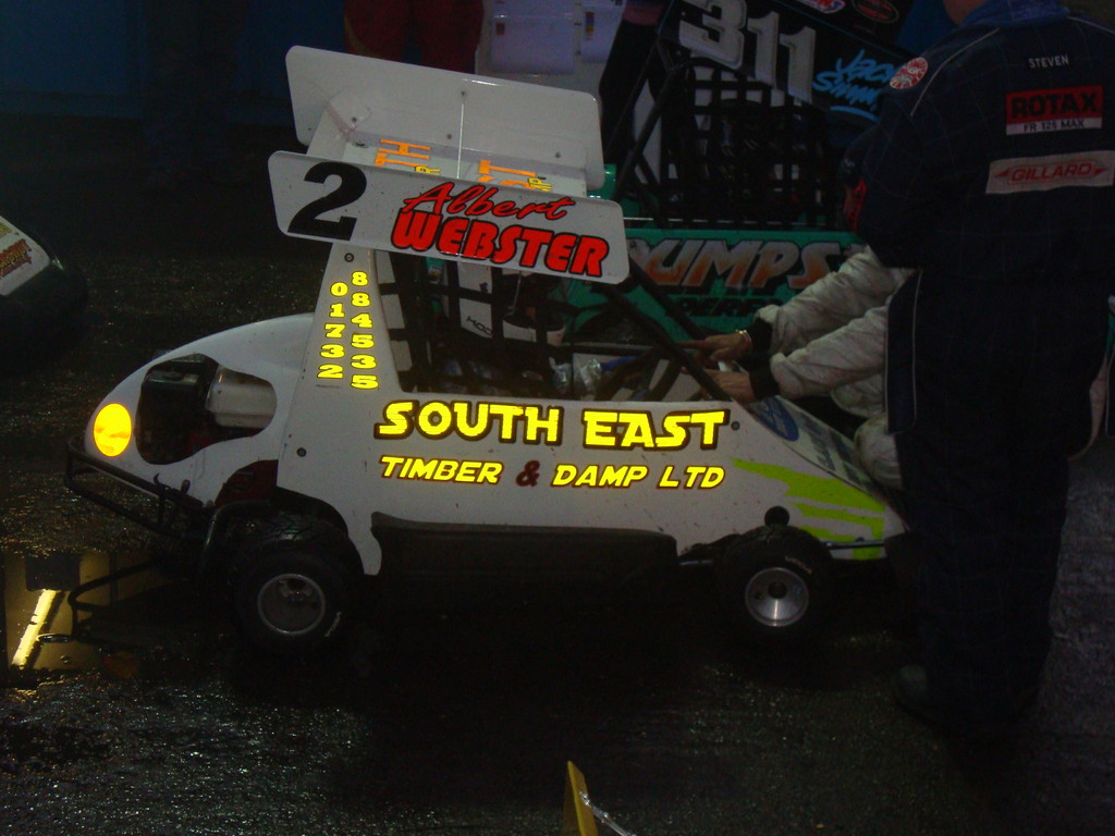 An eventful night at Arena Essex with the weather pretty chilly and at some points raining. The track was very wet and slippery and causing lots of spin outs and crashes throughout the night. Ollie Owen had a fantastic win in the first heat - he was flying. Albert off the pace for the first three races, we think he finds the wet is a bit scary - we were pleased that he took his time and had a safe night. Albert really feels the cold (he has a body like a sparrow) and after sitting waiting for race 3 for 20 minutes he was physically shuddering from the cold. He decided not to go into the final as he was too cold. How wonderful it was that Ollie Owen number 73 went and asked for a trophy for Albert - and he was given one - Albert was really chuffed. THANK YOU OLLIE OWEN you really are a lovely lad. It was first nights racing for Tracey Goodchilds boy Ben MacGregor he did fantastic and a HUGELY impressive doughnut by the exit after one of the heats! - Tracey did well holding it together.