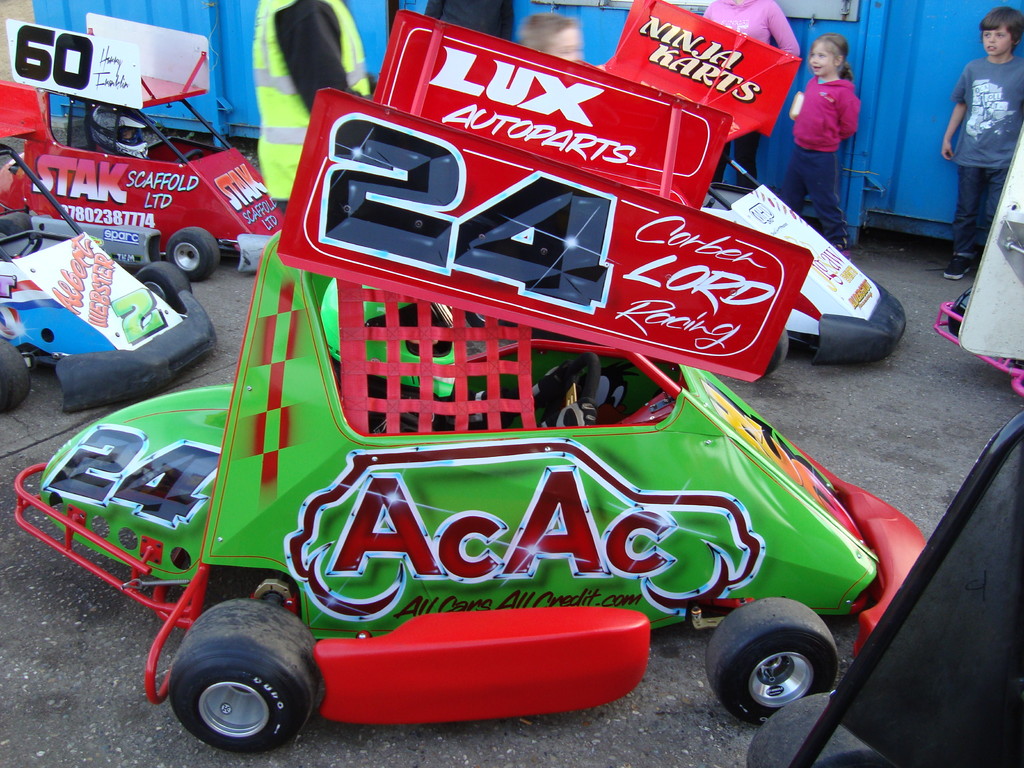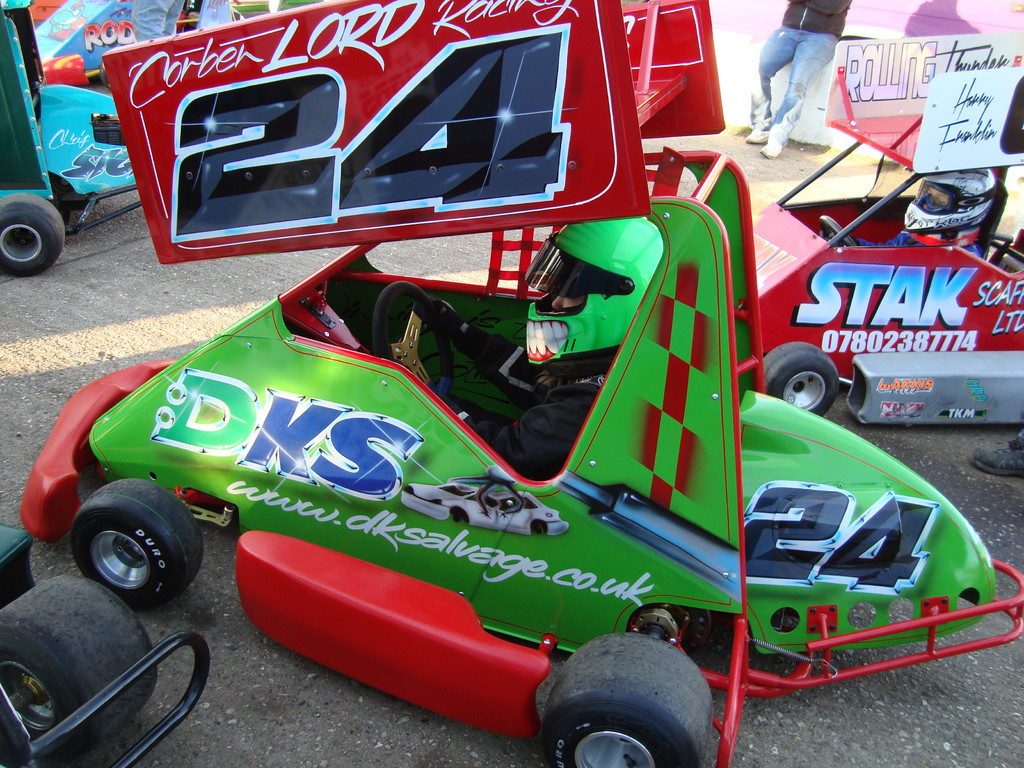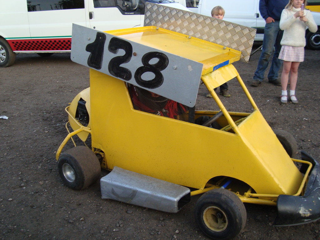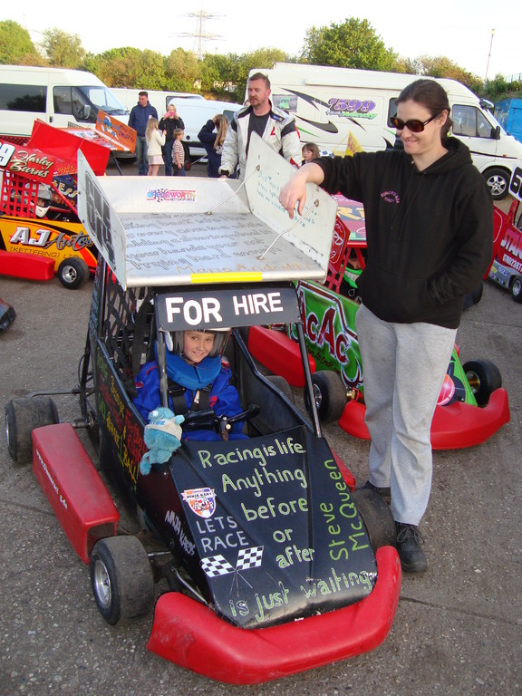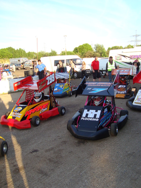 A great nights racing - all drivers safe and sound. A roll over by Harley Burns 299 on the pit bend - sadly missed by my poor videoing (apologies Harley). A BIG thank you to the Searle's for lending us a wheel and tyre after Alberts meeting with the wall in practise. (we owe you one-again!) Also thanks to Mr Lord for help fixing the axel - great support again from the other racing teams.
